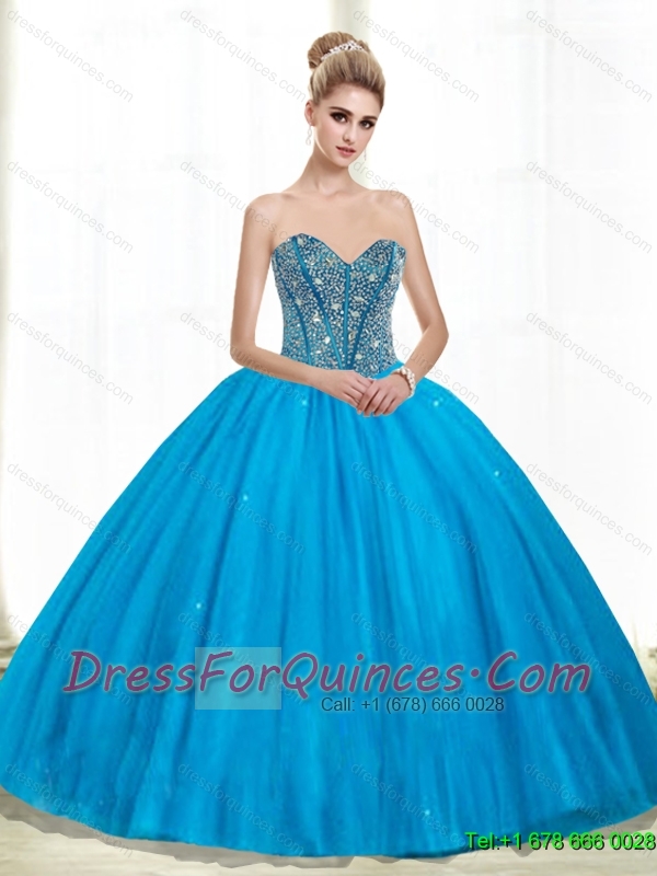 2015 Cheap Sweetheart Ball Gown Beading Quinceanera Dresses in Teal