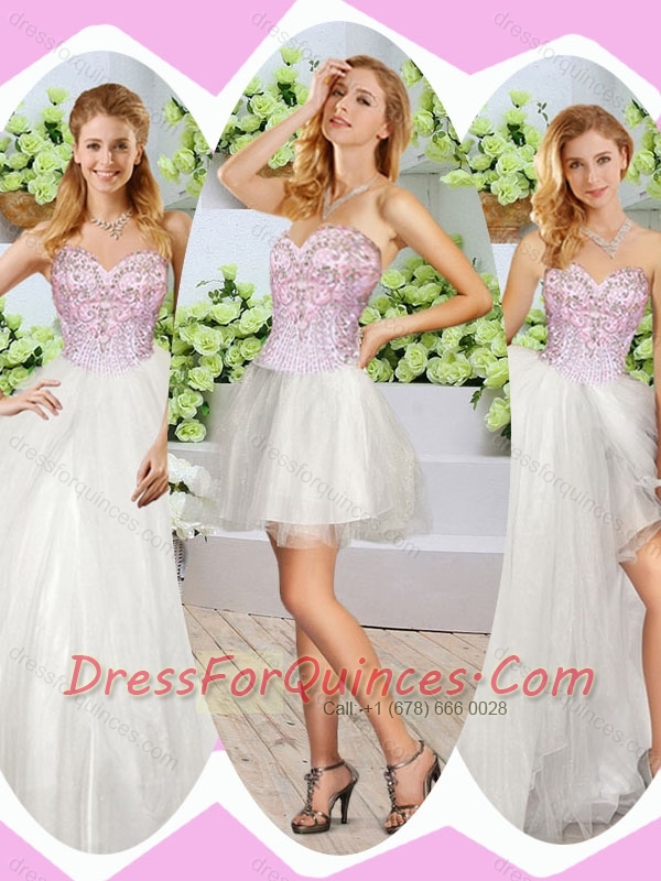 2016 Best High Slit Beading Detachable Sweet 16 Dresses in White