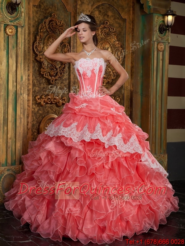 2016 Best Waltermelon Quinceanera Gowns with Appliques and Ruffles