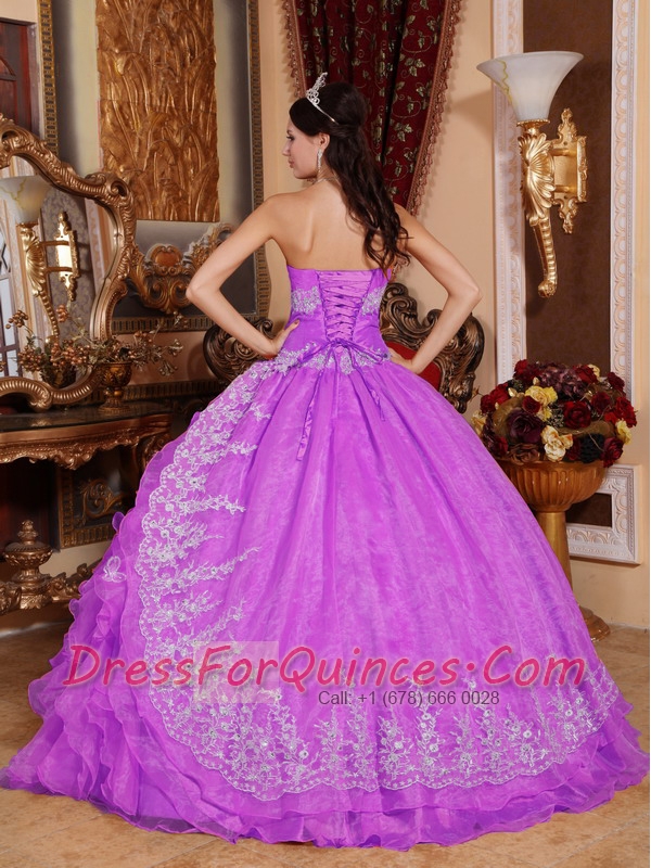 Ball Gown Beadings Appliques and Ruffles Organza Best Quinceanera Dresses Fuchsia