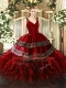 Beautiful Sleeveless Floor Length Beading and Lace and Ruffles Backless Sweet 16 Dresses with Wine Red