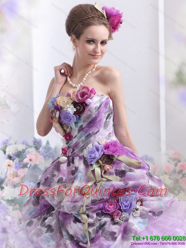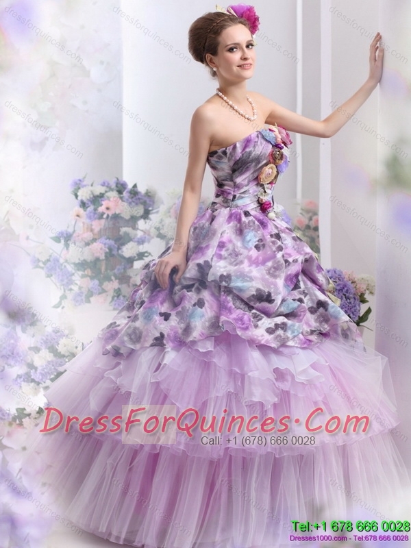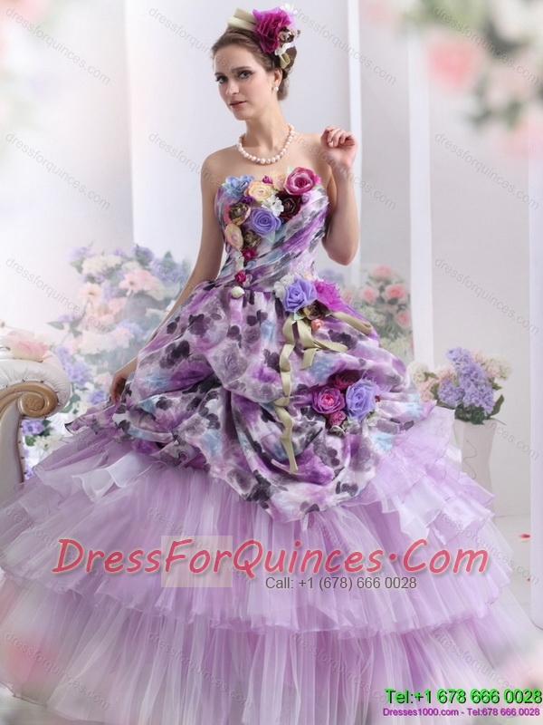 Best 2015 Multi Color Sweet Sixteen Dresses with Hand Made Flowers and Ruffles
