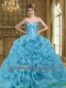 Best Beading and Rolling Flowers Baby Blue 2015 Quinceanera Gown