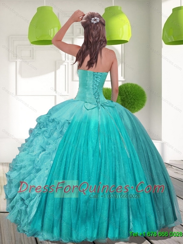 Best Beading and Ruffles Strapless Aqua Blue Quinceanera Dresses for 2015