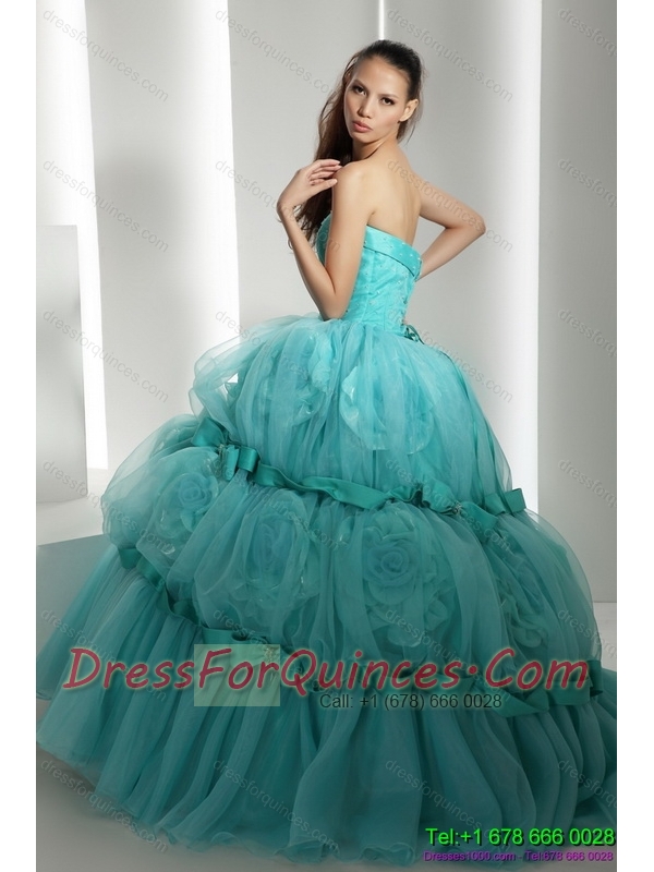 Best Floor Length 2015 Quinceanera Dresses with Hand Made Flowers and Beading