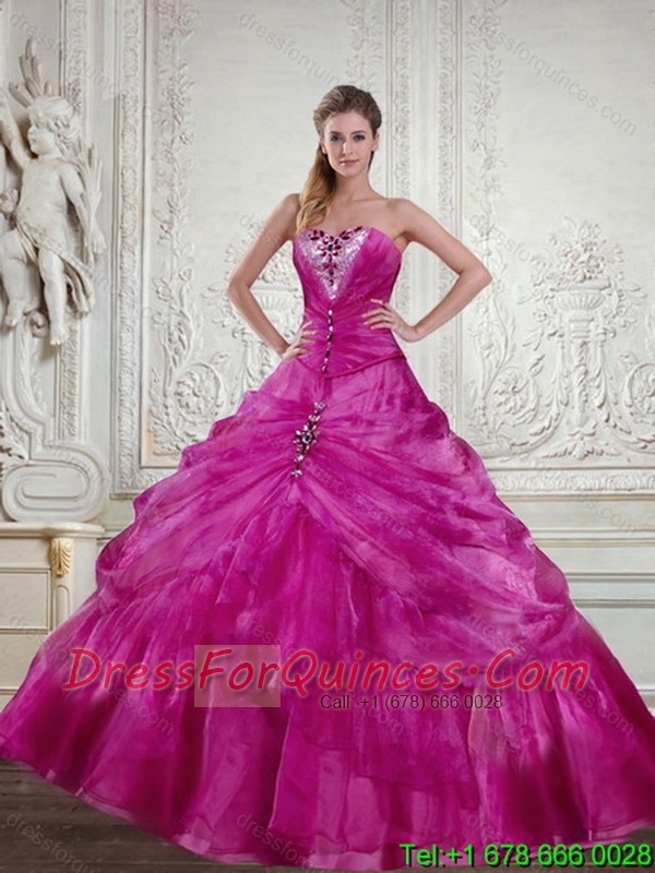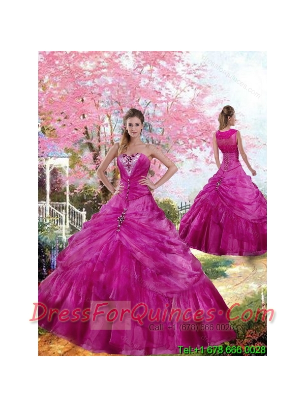 Best Fuchsia 2015 Quinceanera Dress with Beading and Pick Ups