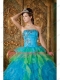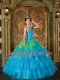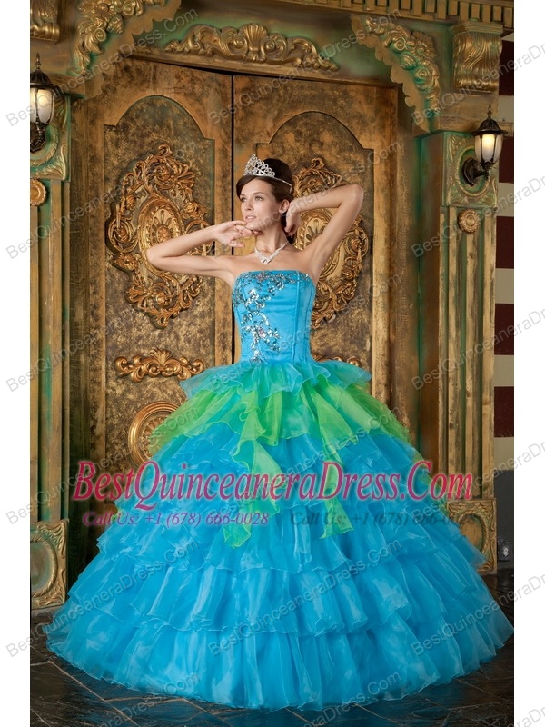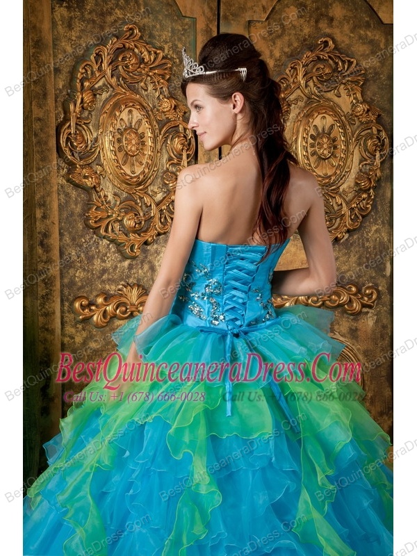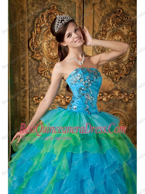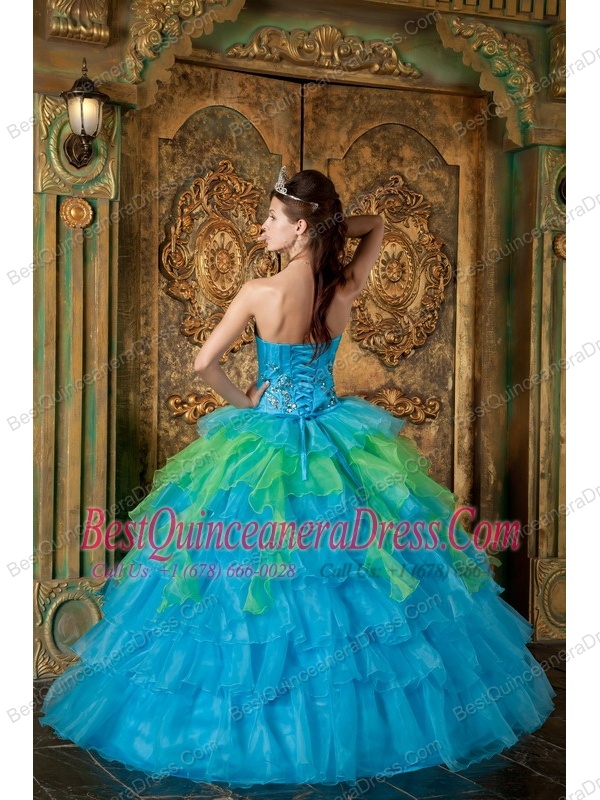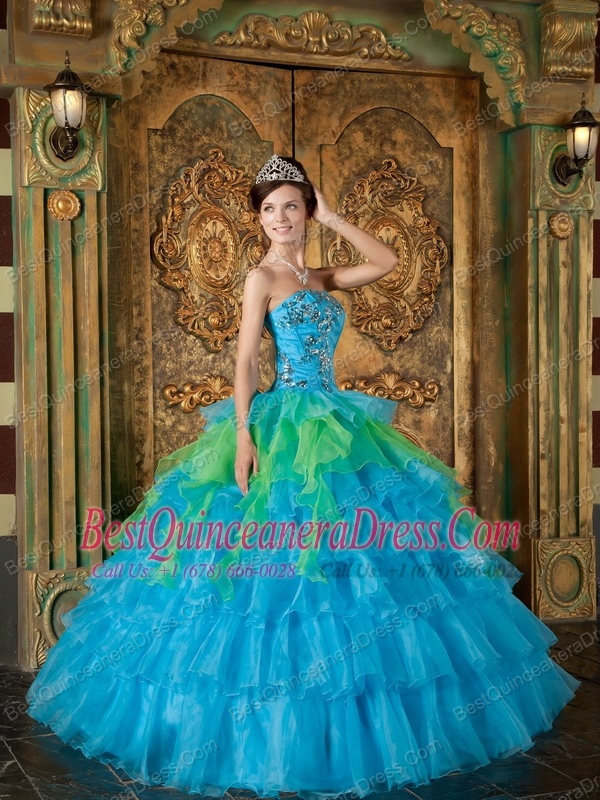 Blue Ball Gown Strapless Floor-length Organza Ruffles Quinceanera Dress