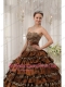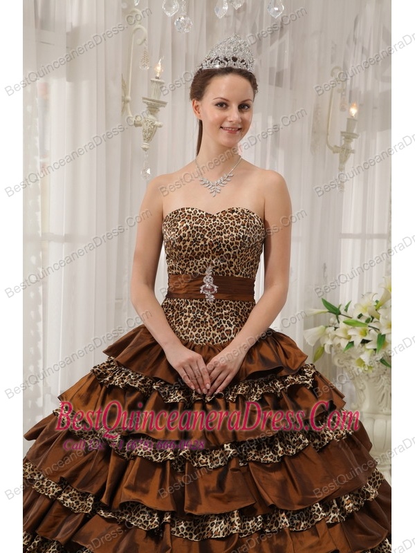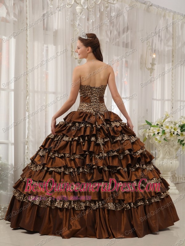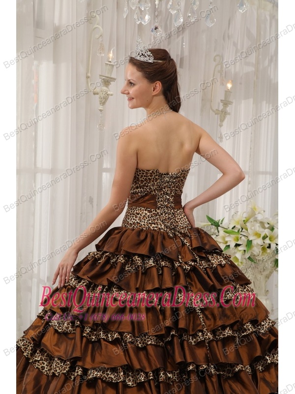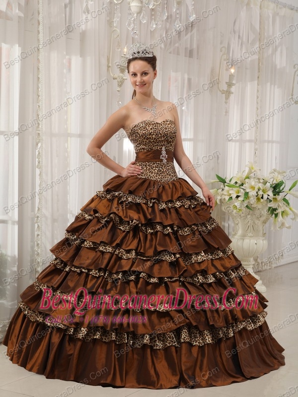 Brown Ball Gown Sweetheart Floor-length Taffeta and Zebra or Leopard Ruffles Quinceanera Dress