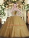 Champagne Sleeveless Tulle Brush Train Lace Up Quinceanera Dress for Military Ball and Sweet 16 and Quinceanera