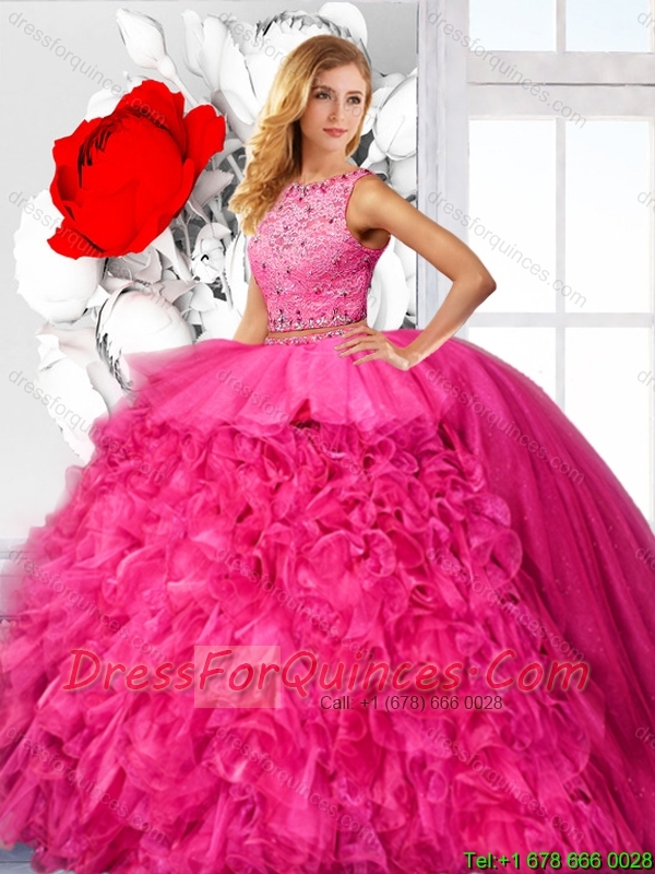 Cheap Hot Pink Detachable Quinceanera Dresses with Scoop