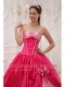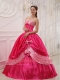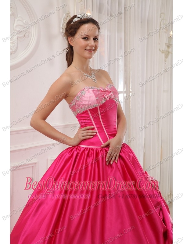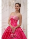 Coral Red Ball Gown Sweetheart Floor-length Satin Appliques with Beading Quinceanera Dress