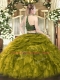 Custom Design Floor Length Olive Green Quinceanera Dress Halter Top Sleeveless Zipper