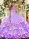 Custom Designed Organza Halter Top Sleeveless Backless Beading and Ruffled Layers Sweet 16 Quinceanera Dress in Lavender