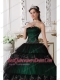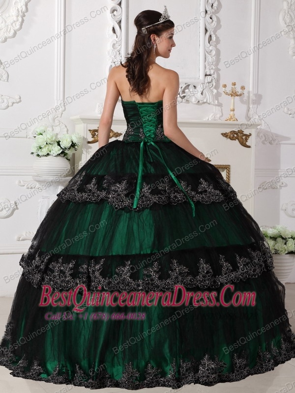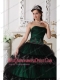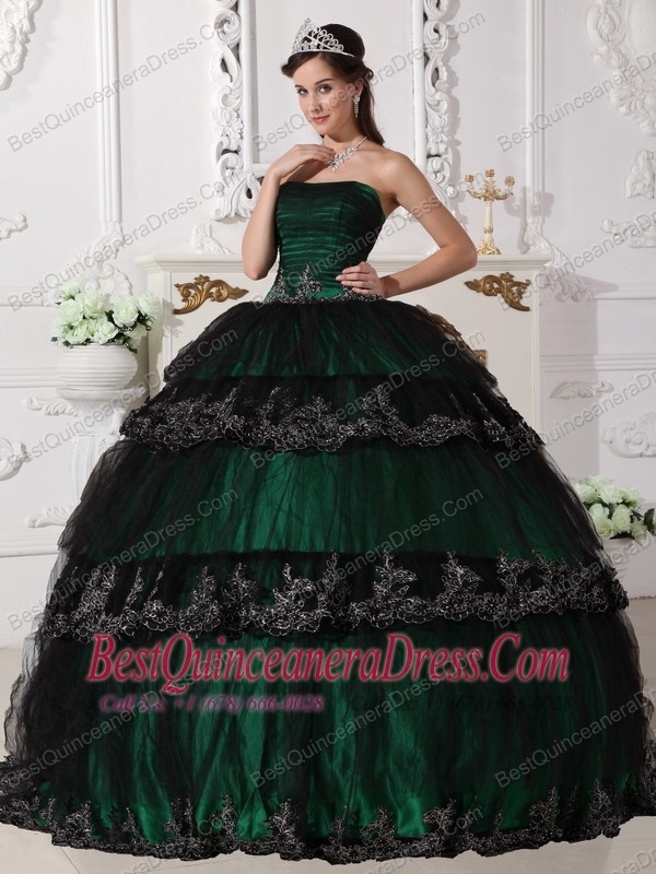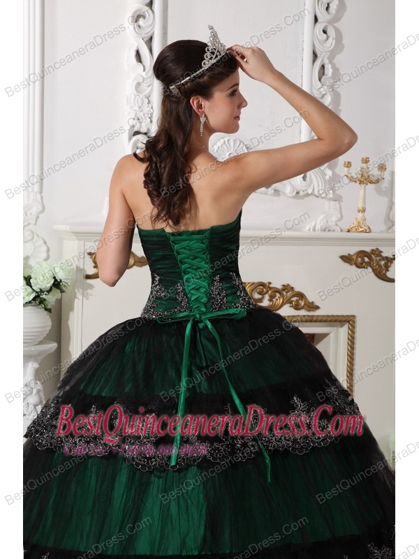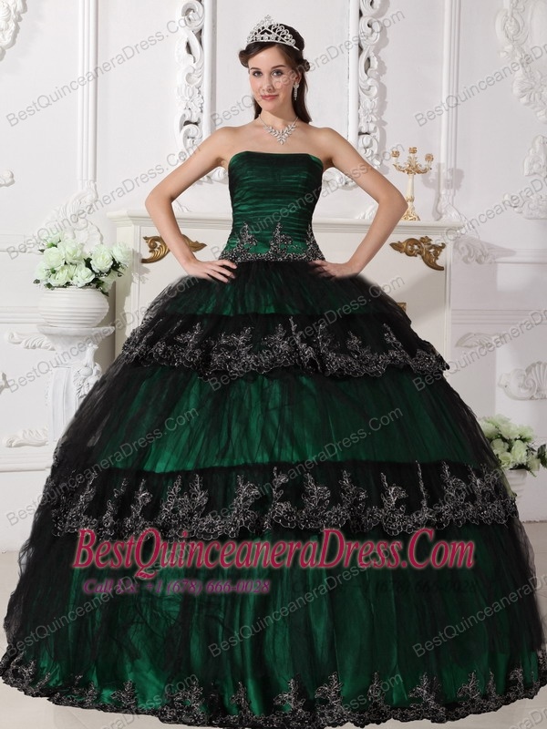 Dark Green Ball Gown Strapless Floor-length Taffeta and Tulle Appliques Quinceanera Dress