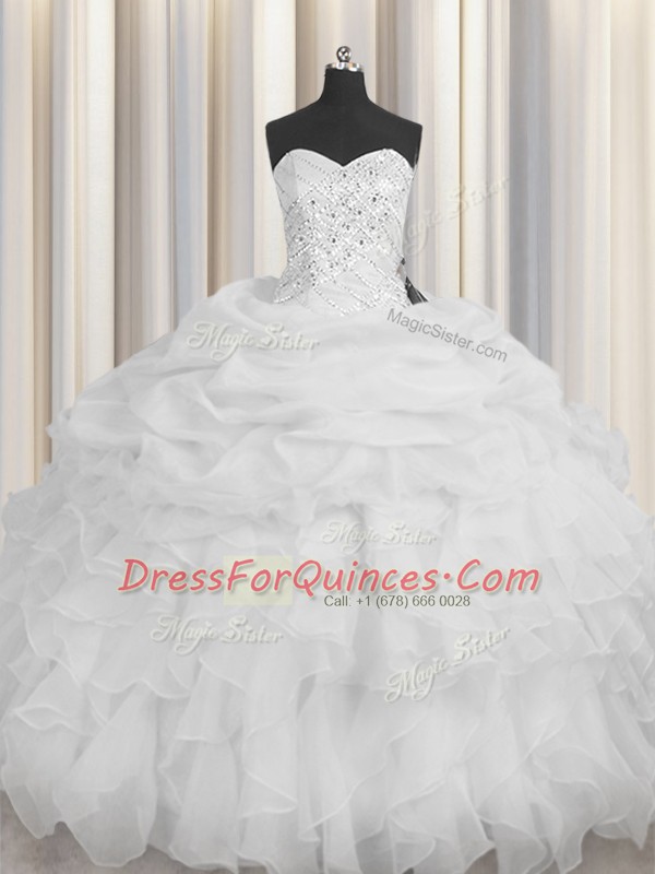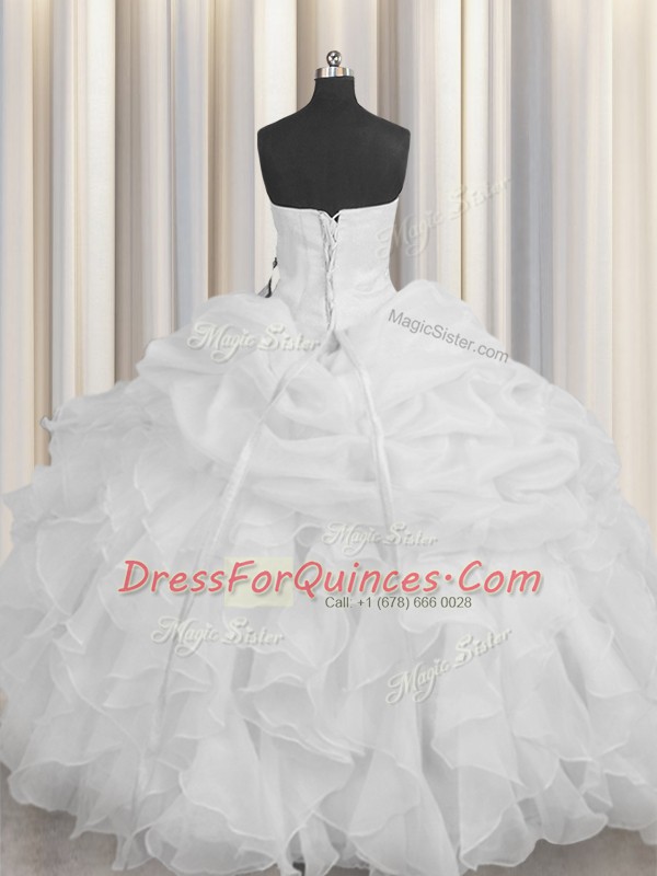 Dazzling Floor Length Ball Gowns Sleeveless White Ball Gown Prom Dress Lace Up