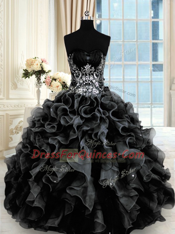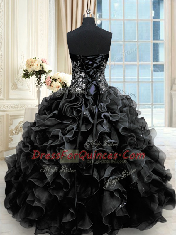Decent Black Sleeveless Beading and Ruffles Floor Length Quinceanera Dresses