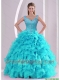 Detachable Beading and Ruffles Quinceanera Dresses in Aqua Blue