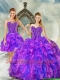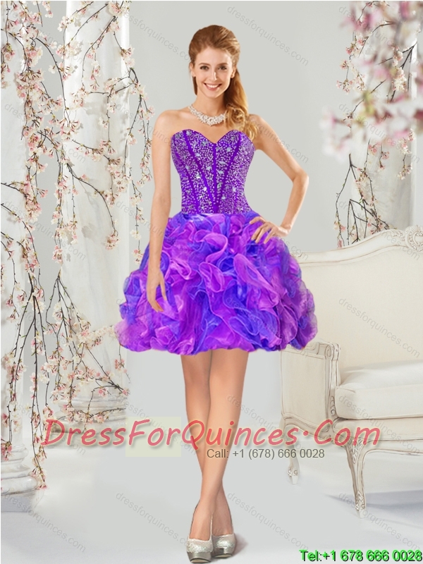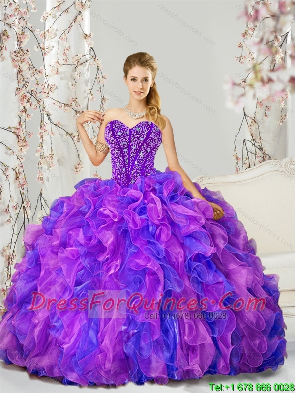 Detachable Blue and Lavender Dresses for Quince with Beading and Ruffles