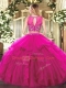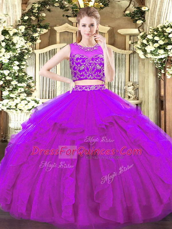 Dramatic Purple Sleeveless Floor Length Beading and Ruffles Zipper Quinceanera Dresses