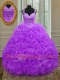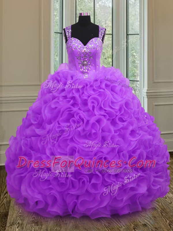 Flirting Purple Ball Gowns Straps Sleeveless Organza Floor Length Zipper Beading and Ruffles Quinceanera Dresses