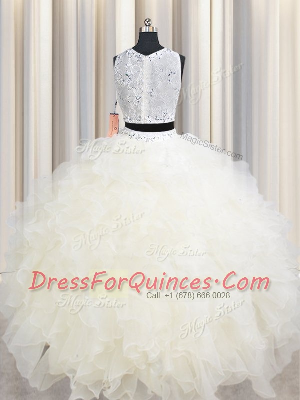 Flirting Scoop Sleeveless Organza Vestidos de Quinceanera Beading and Ruffles Lace Up