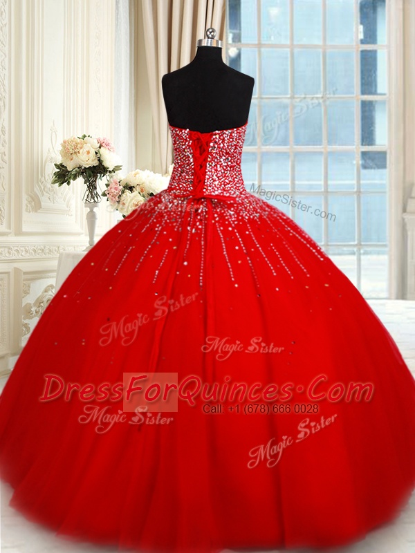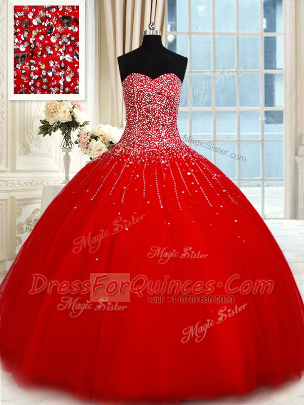 Floor Length Ball Gowns Sleeveless Red 15 Quinceanera Dress Lace Up