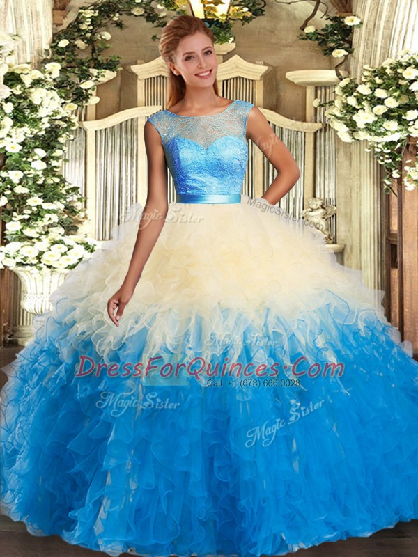 Floor Length Multi-color Sweet 16 Dress Organza Sleeveless Lace and Ruffles
