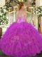 Fuchsia Lace Up Halter Top Beading and Embroidery and Ruffles Sweet 16 Dresses Organza Sleeveless