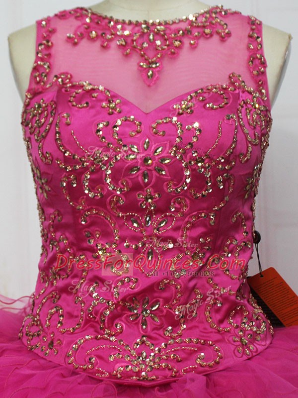 Fuchsia Lace Up Quinceanera Dresses Beading and Ruffles Sleeveless Floor Length