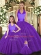Glamorous Floor Length Ball Gowns Sleeveless Purple Sweet 16 Dress Lace Up