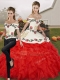 Glittering White And Red Sweet 16 Dress Military Ball and Sweet 16 and Quinceanera with Embroidery and Ruffles Off The Shoulder Sleeveless Lace Up