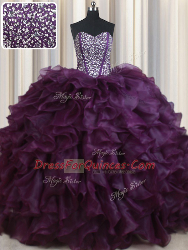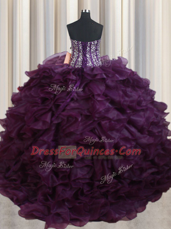 Gorgeous Dark Purple Sweetheart Lace Up Beading and Ruffles Sweet 16 Quinceanera Dress Sleeveless