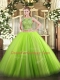 Green Scoop Lace Up Beading Sweet 16 Dresses Sleeveless