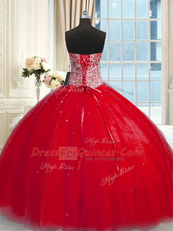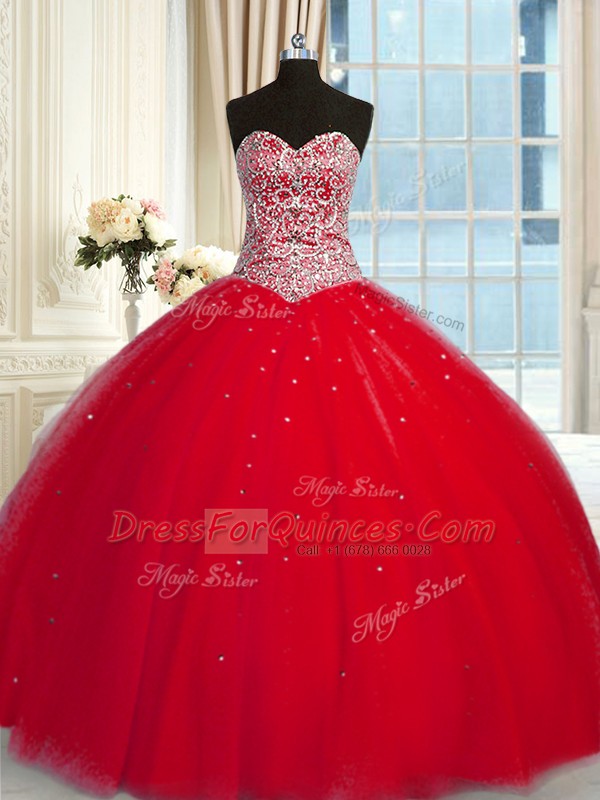 Halter Top Red Sleeveless Beading and Sequins Quinceanera Dress