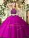 Halter Top Sleeveless Zipper Vestidos de Quinceanera Fuchsia Tulle