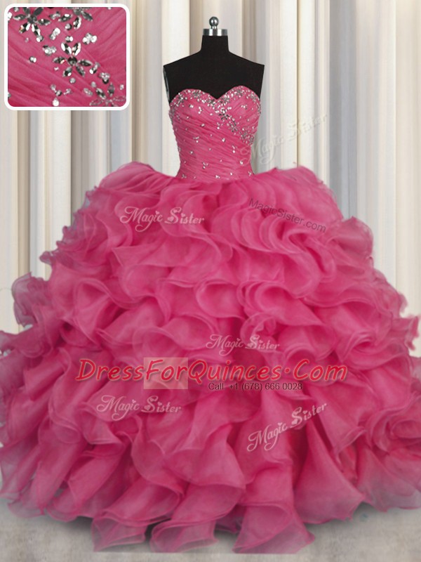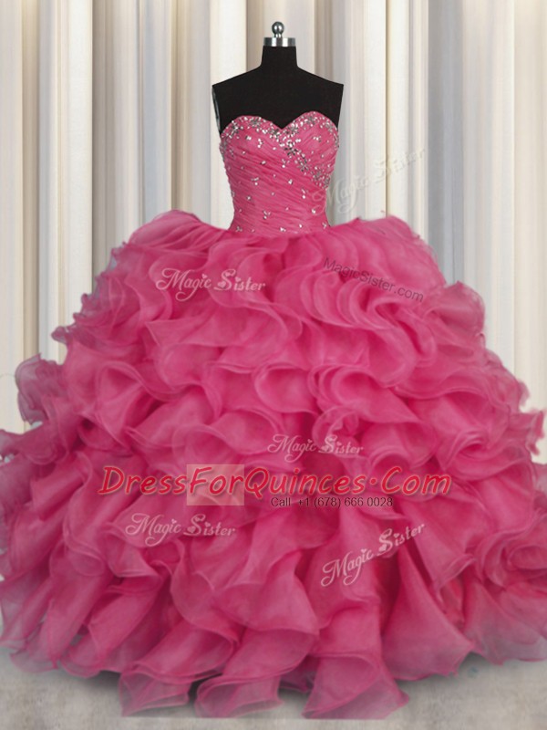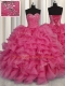Hot Pink Sweetheart Neckline Beading and Ruffles Sweet 16 Dresses Sleeveless Lace Up