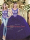 Hot Selling Purple Ball Gowns Tulle Scoop Sleeveless Beading and Ruffles Floor Length Lace Up Sweet 16 Dresses
