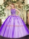 Lavender Two Pieces Beading and Appliques Quinceanera Gowns Lace Up Tulle Sleeveless Floor Length