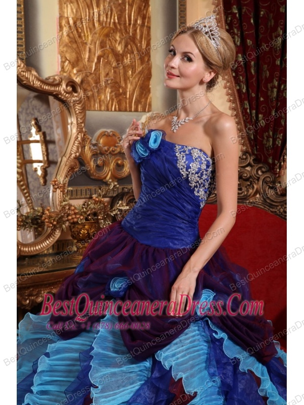 Multi-color Ball Gown Strapless Floor-length Taffeta and Organza Appliques with Beading Quinceanera Dress