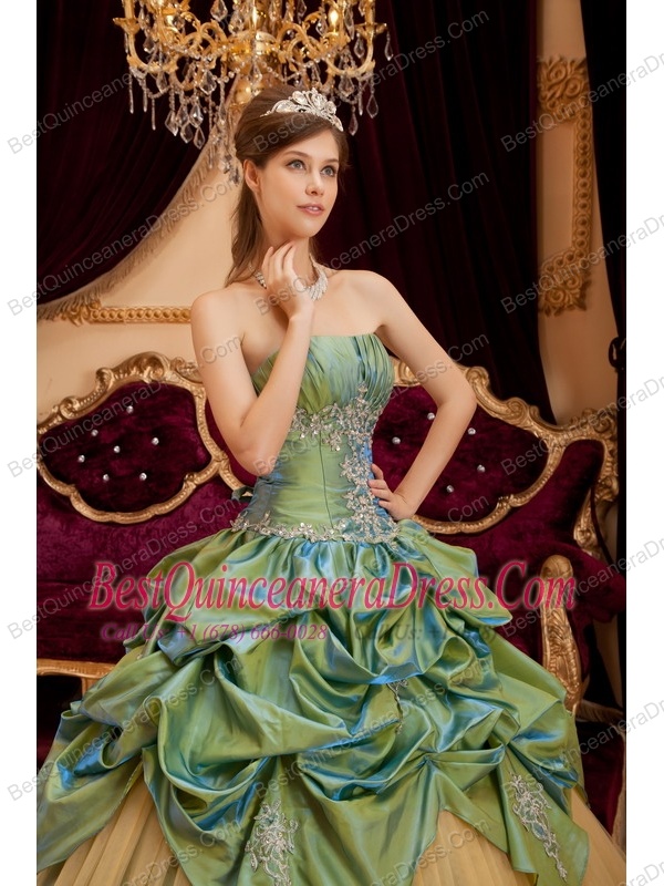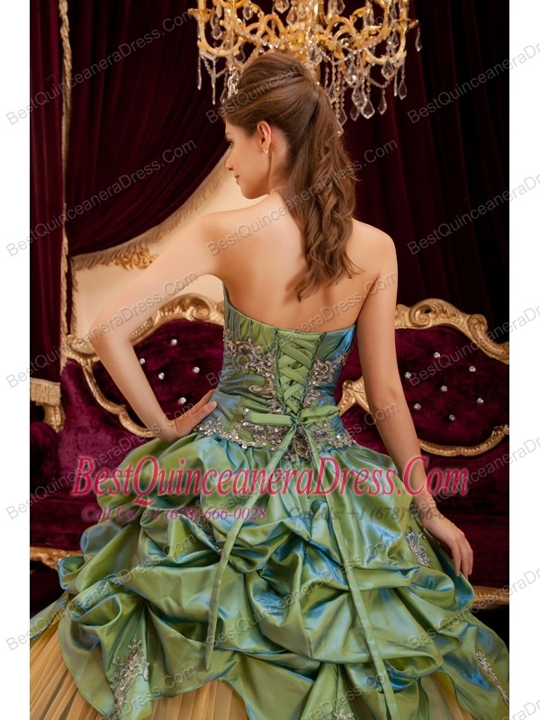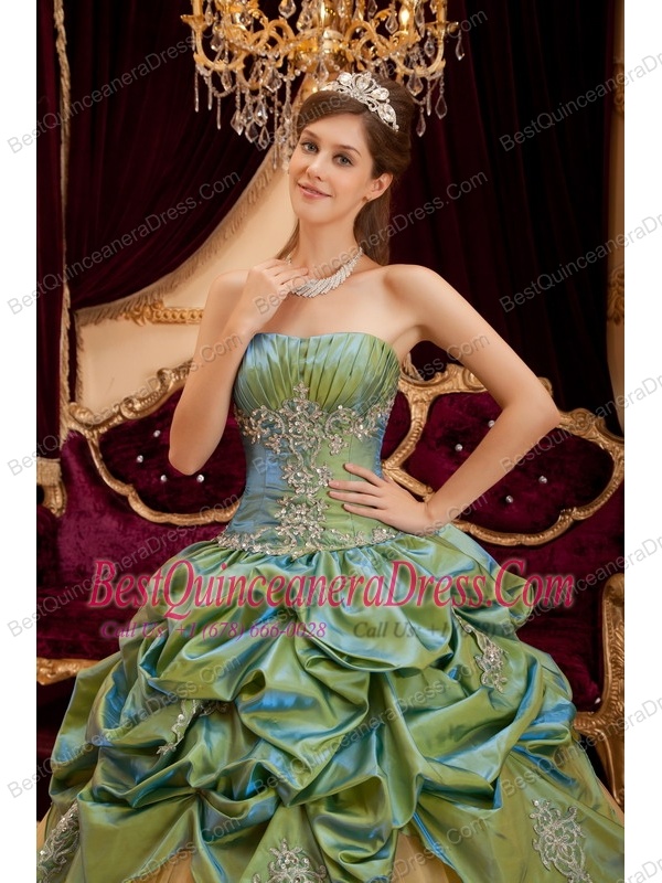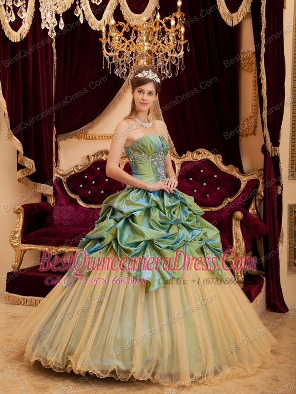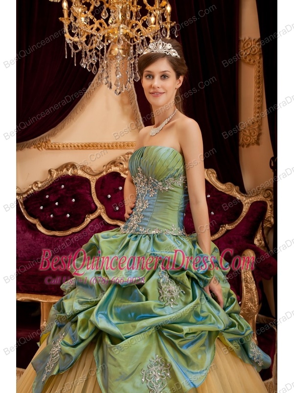 Olive Green Ball Gown Strapless Floor-length Taffeta and Tulle Beading Quinceanera Dress