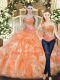 Orange Red Tulle Lace Up Sweetheart Sleeveless Floor Length Quince Ball Gowns Beading and Ruffles