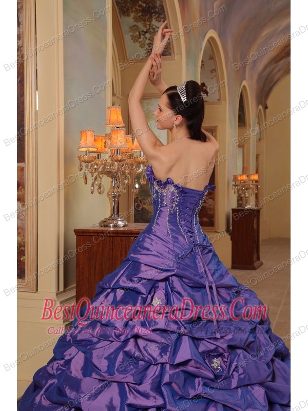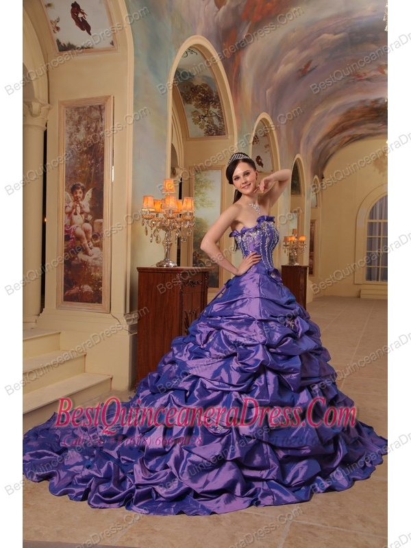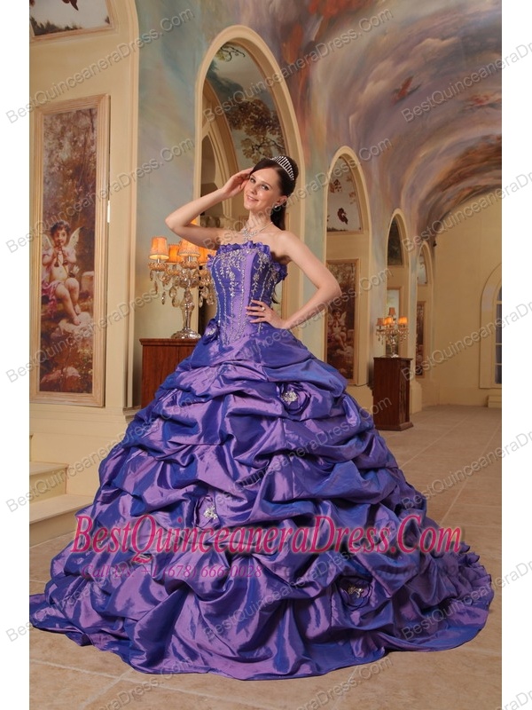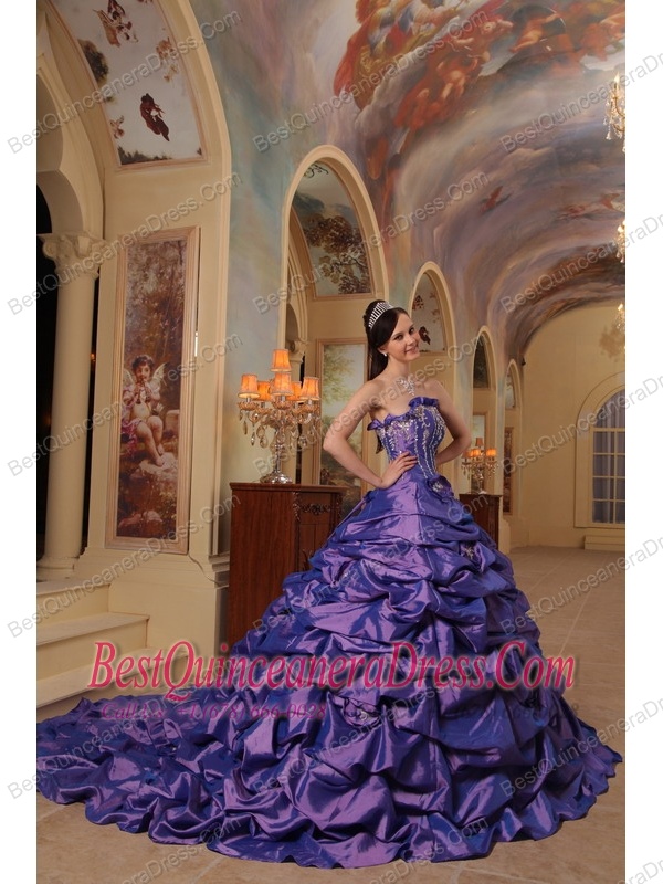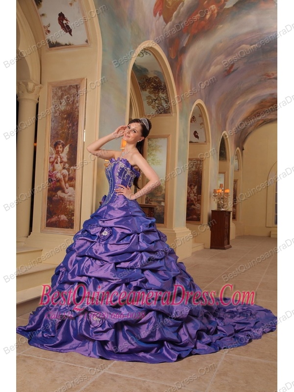 Purple Ball Gown Strapless Court Train Pick-ups Taffeta Quinceanera Dress