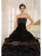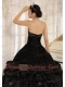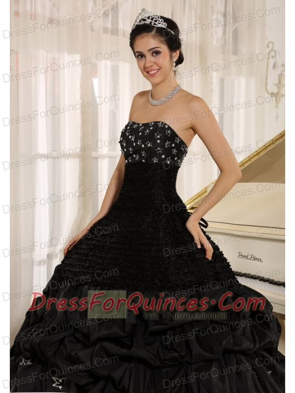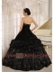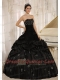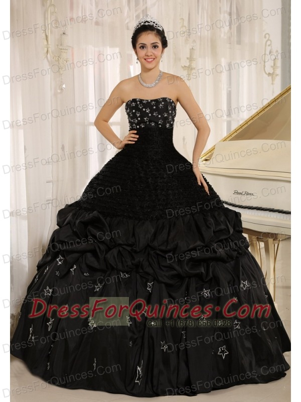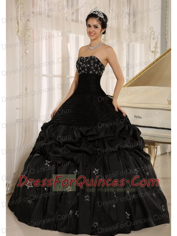 Quinceanera Dress Appliques Decorate On Taffeta Strapless Black
