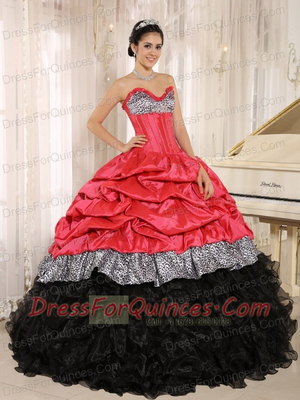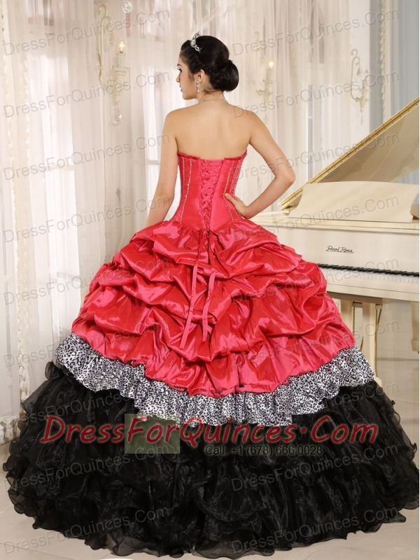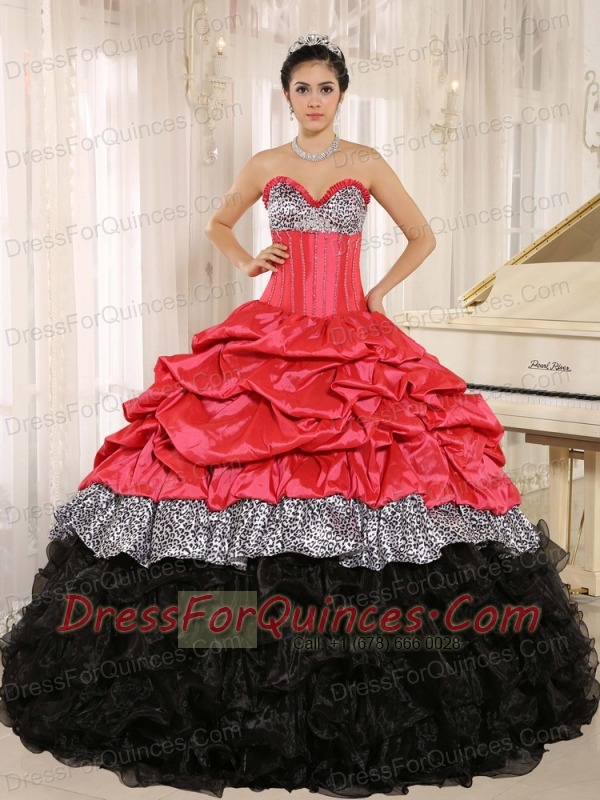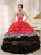 Quinceanera Dress Watermelon and Black Sweetheart Ruffles With Floor-length