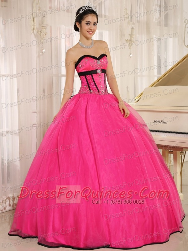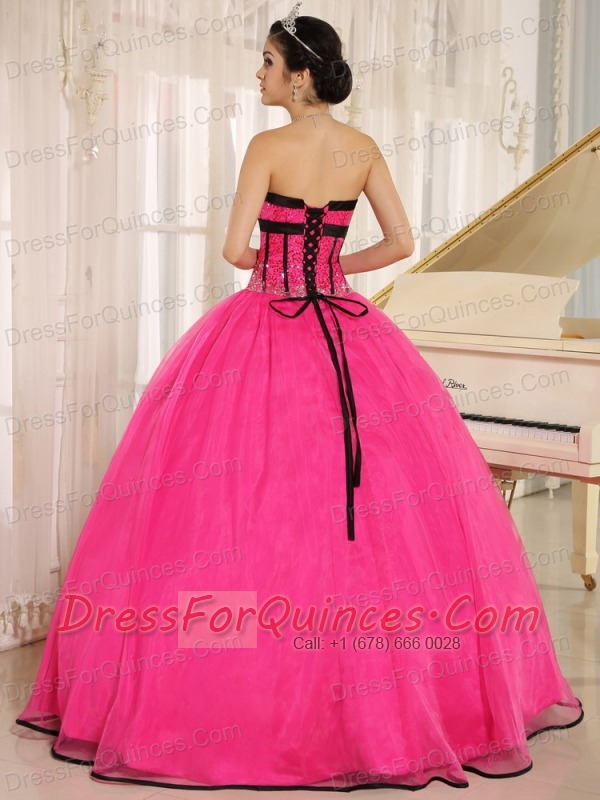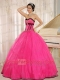 Qunceanera Dress With Hot Pink Sweetheart Beaded Decorate Organza