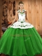 Shining Embroidery Quinceanera Gowns Green Lace Up Sleeveless Floor Length