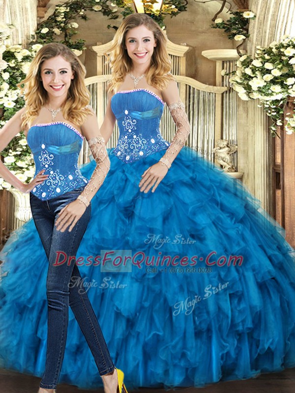 Sleeveless Lace Up Floor Length Beading and Ruffles 15th Birthday Dress