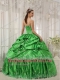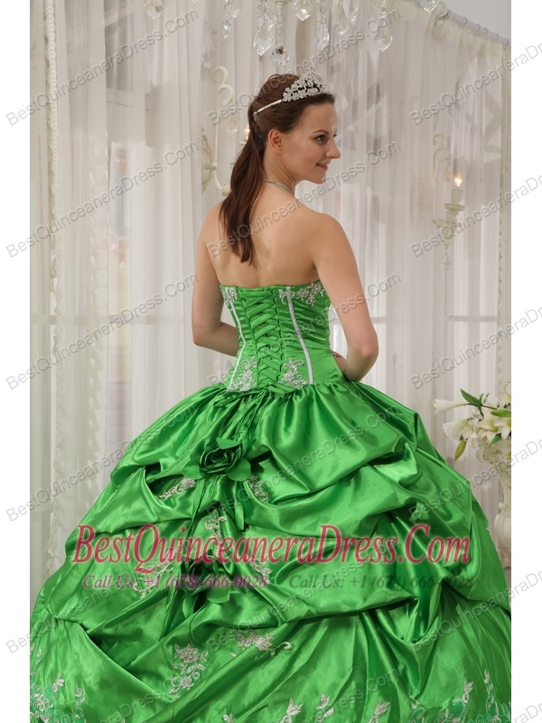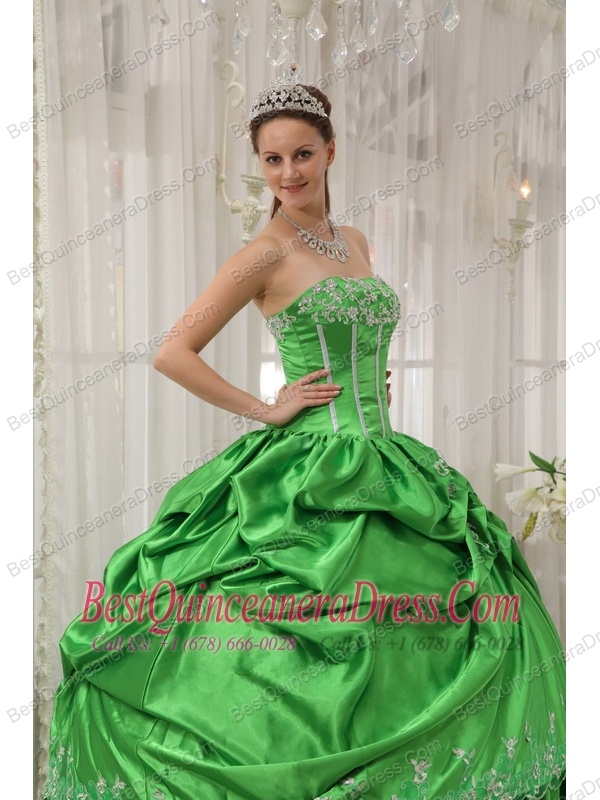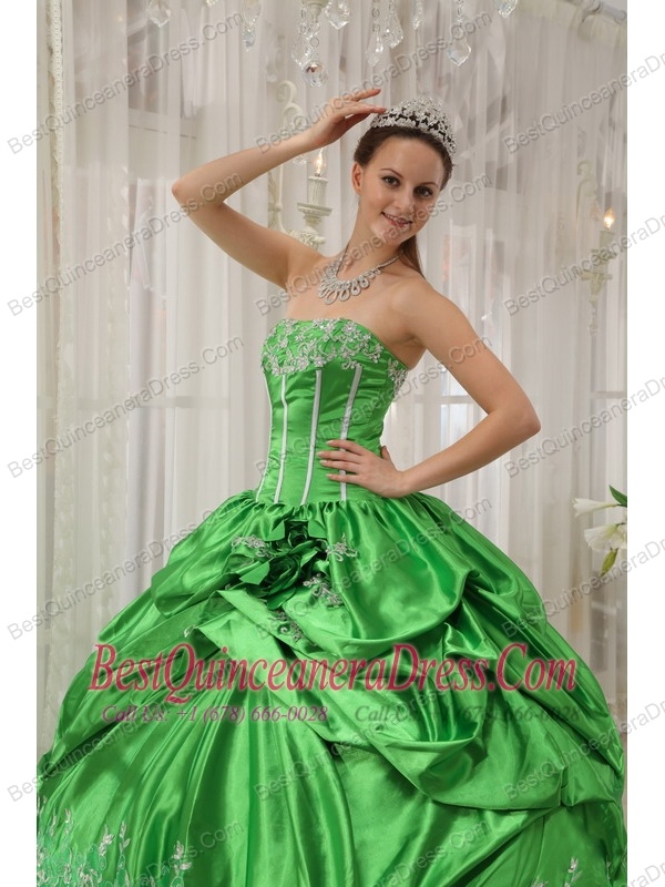Spring Green Ball Gown Strapless Floor-length Taffeta Beading and Applique Quinceanera Dress