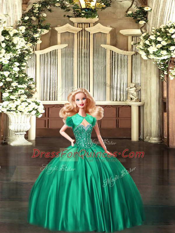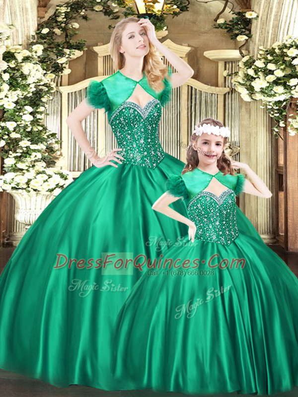 Sumptuous Green Ball Gowns Organza Sweetheart Sleeveless Beading Floor Length Lace Up Sweet 16 Dresses