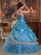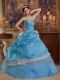 Sweetheart Appliques Pick-ups Organza Aqua Blue Best Quinceanera Dresses